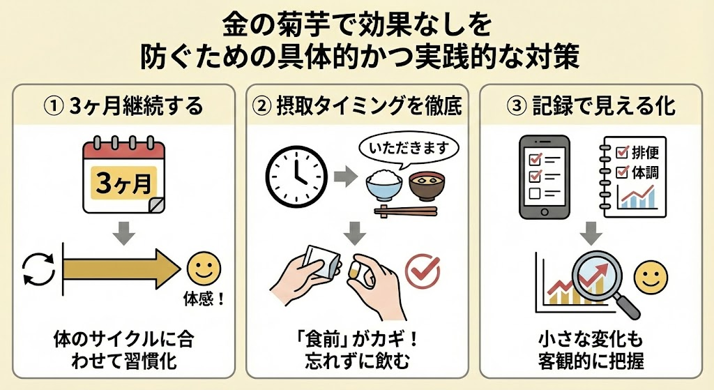 「効果なし」という残念な結果を避け、しっかりと体感を得るためには、単に飲むだけでなく「戦略的に」活用することが重要です。ここでは、今日からできる具体的な対策を提示します。