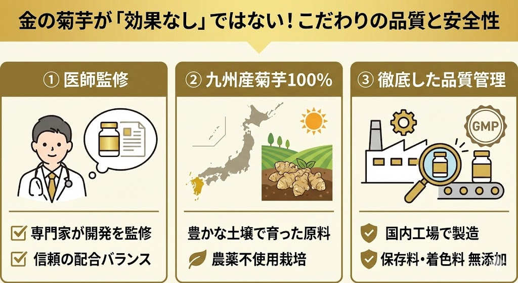 金の菊芋が効果なしではない!医師監修・九州産のこだわりが質と安全性を!