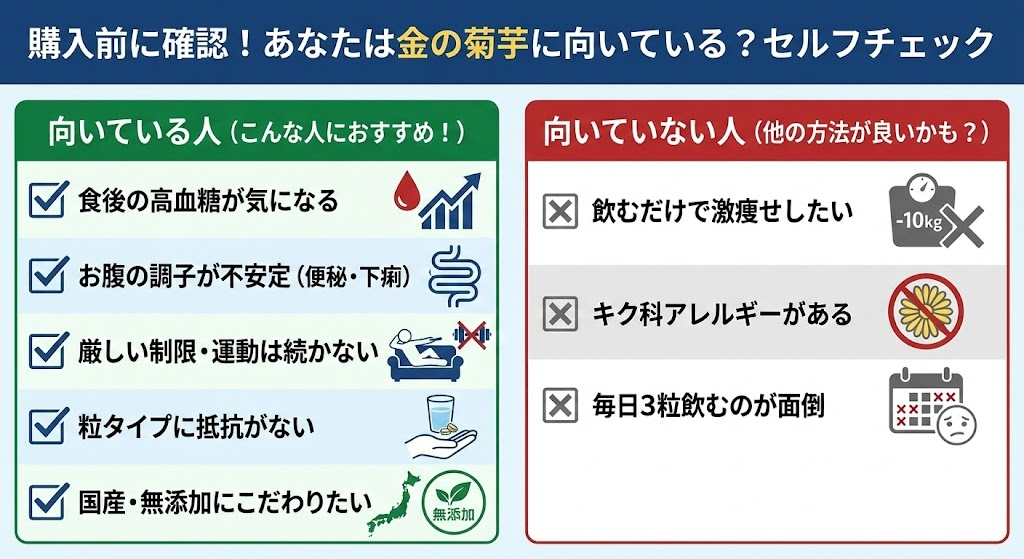 購入前に確認!あなたは金の菊芋に向いている?セルフチェック