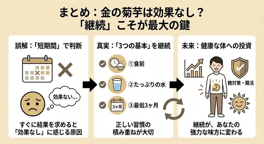 まとめ:金の菊芋は効果なし?「継続」こそが最大の鍵